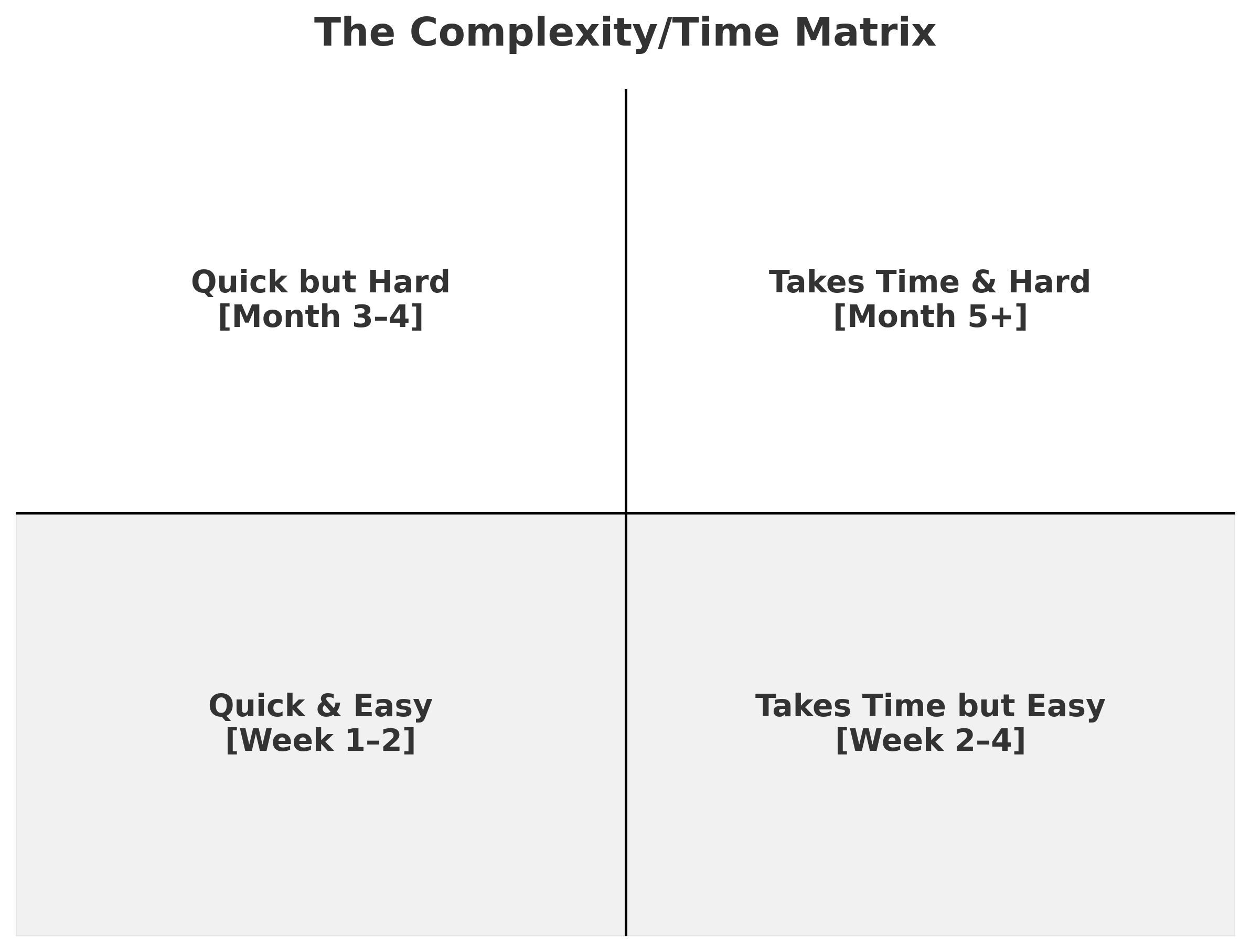 Only overload the easy quadrants initially. This is where most development programs fail. They mix complexity and volume from day one, creating stress without learning.
